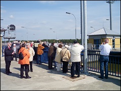 Als letzten Punkt der Führung fahren wir zum Herzstück des Wasserstraßenkreuzes: Der Trogbrücke des Mittellandkanals über die Elbe.
