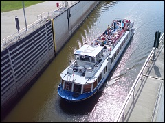 Da das Schiffshebewerk Magdeburg-Rothensee nur Schiffe bis 82m Länge aufnehmen kann, wurde parallel dazu 1998 - 2001 die Sparschleuse Magdeburg-Rothensee gebaut. Auf unserer Führung besteigen Sie den Schleusenturm. Von dort aus gibt es einen grandiosen Rundblick über die Schleuse, das Schiffshebewerk, die Trogbrücke und das Magdeburger Hafen- und Industriegebiet.