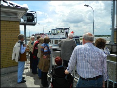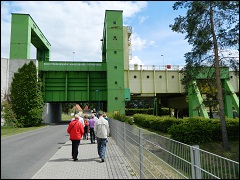 Unsere Wasserstraßenkreuz-Führung beginnt am Schiffshebewerk Magdeburg-Rothensee (Treffpunkt am Busparkplatz vor der Gaststätte zum Anker). Dieses größte Auftriebs-Schiffshebewerk der Welt wurde 1938 in Betrieb genommen. Über den Rothenseer Verbindungskanal war das Schiffshebewerk von 1938 - 2001 die einzige Verbindung zwischen dem Mittellandkanal und der Elbe.