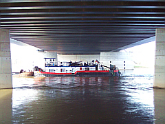 Unter der Kanalbrücke: Mit 152 000 Tonnen Stahl und Wasser über Ihren Köpfen stellt sich bei einigen Touristen ein ungutes Gefühl ein – aber keine Angst, der Stadtführer erklärt, warum die Trogbrücke erdbebensicher gebaut ist...